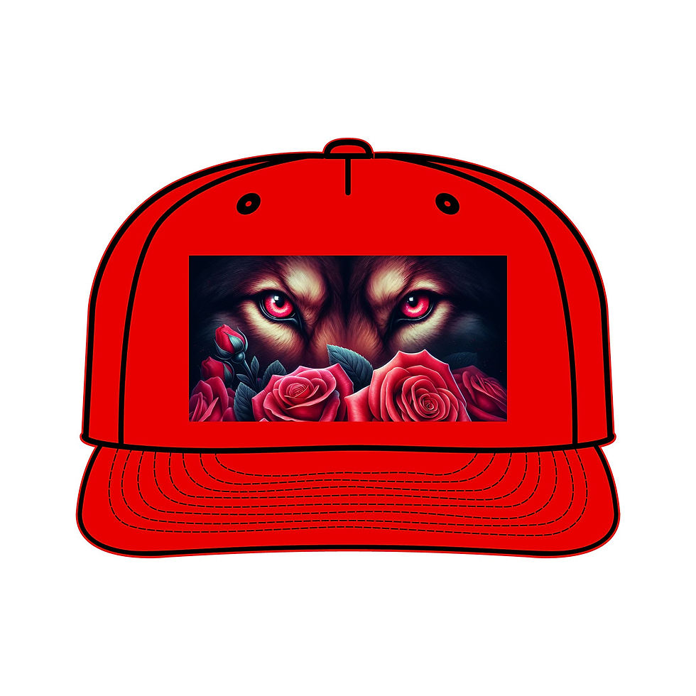 Wolf & Roses Snapback Cap - Bold Red and Black Designs for Outdoor Enthusiasts