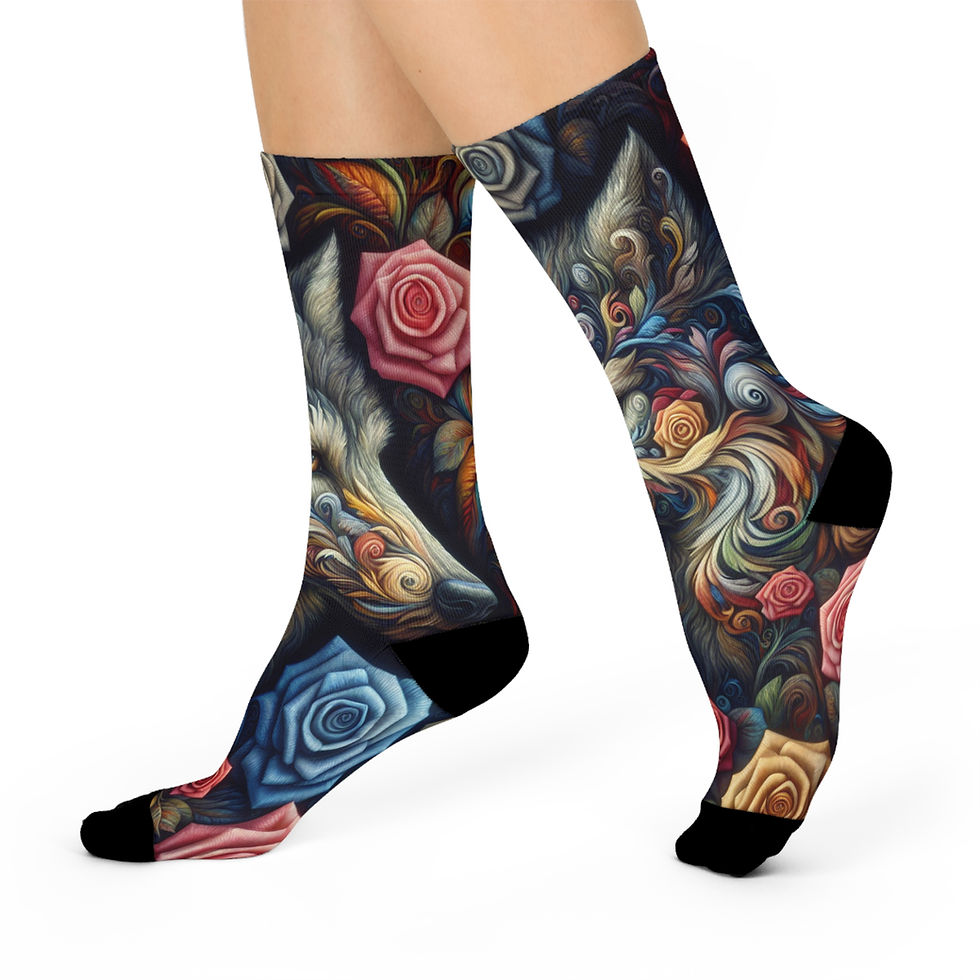 Wolf N'Rose Cushioned Crew Socks - Colorful Rose Motif